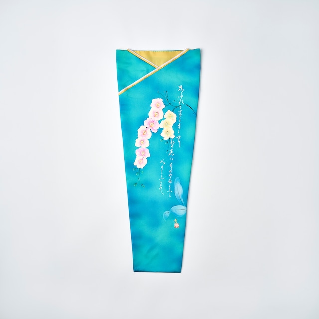 提琴衣(ていきんえ) 正絹の着物生地で仕立てた一点もののヴァイオリン保護袋(Violin Cover / Violin Bag) 作品名:藤花 意匠制作:木下秀硯 氏作 サイズ 口幅 30cm 底幅 17cm 長さ 76cm 販売価格 275,000円(税込) (提琴)ヴァイオリンに、(衣)きものを纏わせる 提琴衣は、日本の衣文化である「きもの」から着想を得て制作されたヴァイオリン保護カバーです。 京都の伝統工芸の技術をもとに、職人方の手仕事によって作り出される一点ものです。 生地には正絹(絹100%)の着物生地を使用。 縫製は熟練和裁士監修による完全手縫い仕立てで、楽器をやさしく包み込みます。 意匠は本作のために、木下秀硯氏が手描きで制作した一点ものです。 描かれているのは、風に揺れる藤花(とうか)の姿を題材とした意匠です。 やわらかく連なる花房と新緑を思わせる爽やかな緑の地色は、春から初夏にかけての里山の風情が感じれられます。 提琴衣は、高品質なヴァイオリンカバーとしての実用性、そして同時に、素材、職人の工程・技術、作品性が重なり形づくられる一点の工芸作品です。 ご自身の大切なヴァイオリンに。 またヴァイオリンを大切になさっている方への贈り物や、お祝いの品にもお喜びいただいています。 提琴衣は、長く安心してご愛用いただけるよう、内側生地の張り替えサービスにもご対応しております。 大切なヴァイオリンに長く寄り添い守る一品となっております。 English keywords violin cover / silk violin bag / kimono violin cover / Kyoto artisan